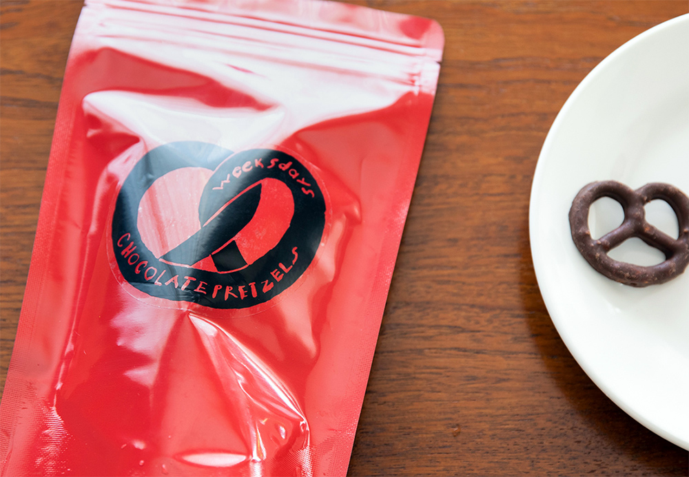 推薦人: あやや 今年のバレンタインの時期に売り出された、伊藤まさこさんのweeksdaysオリジナルのチョコプレッツェルです。前回は即完売。好評だったので、じつは明日3月4日(木)11:00に再販売されます。 このチョコプレッツェル、甘いんだろうなぁ~と思うでしょ? ほろっとちょうどよいビターなんです。岩塩のようにコリッとした塩がまぶしてあって、その塩味があとをひく、ひく。 私は冷蔵庫でちょっと冷やして食べる派。「しょっぱ」「あま」「つめた」の3つの感覚が口にひろがって、とまりません。 明日の販売でもしかしたら売り切れるかもしれないのですが、3月3日のひなまつりスペシャルということでweeksdaysチームにお願いして、33名の方にプレゼントできることになりました。